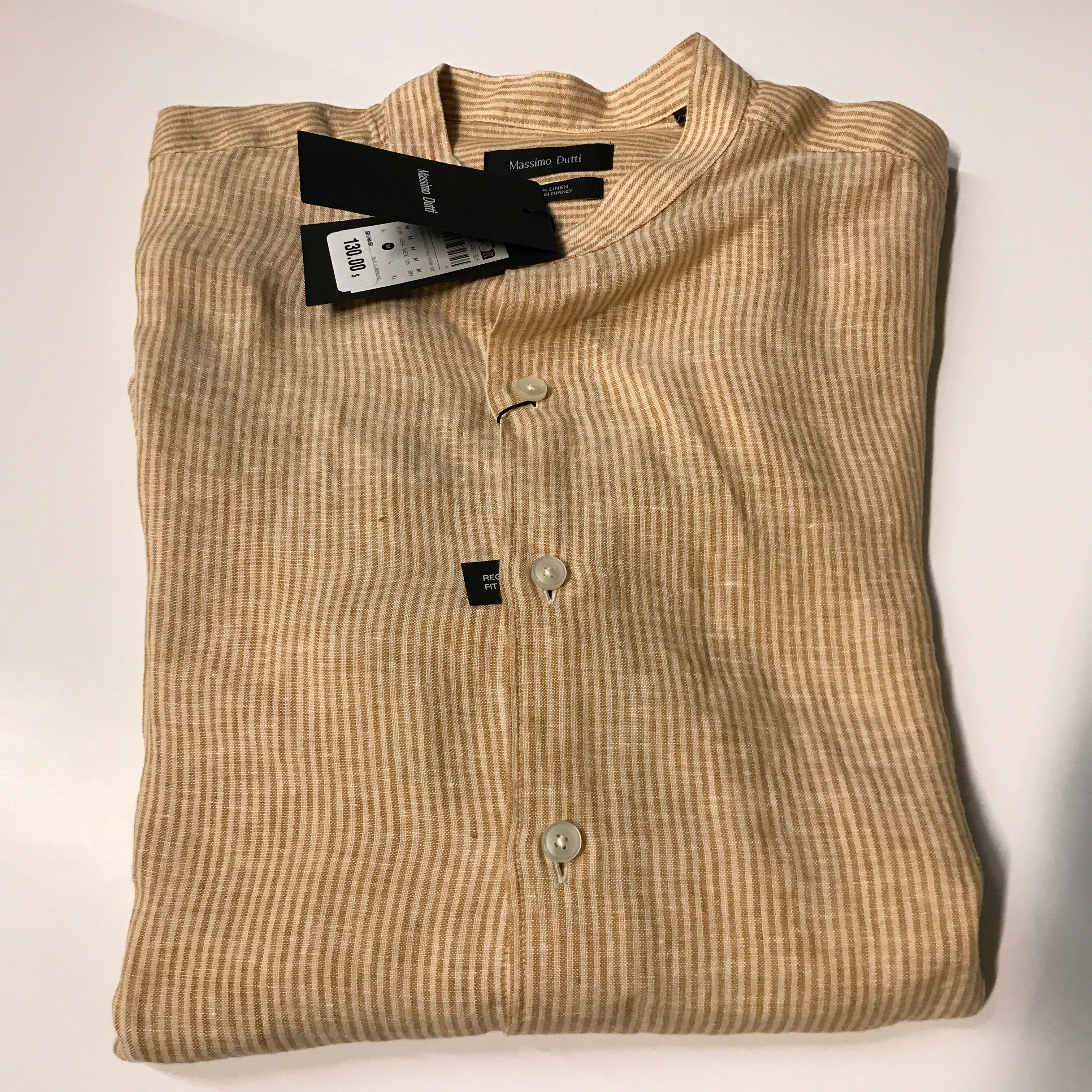 Massimo Dutti Men's Striped Linen Button-Up Shirt - Beige