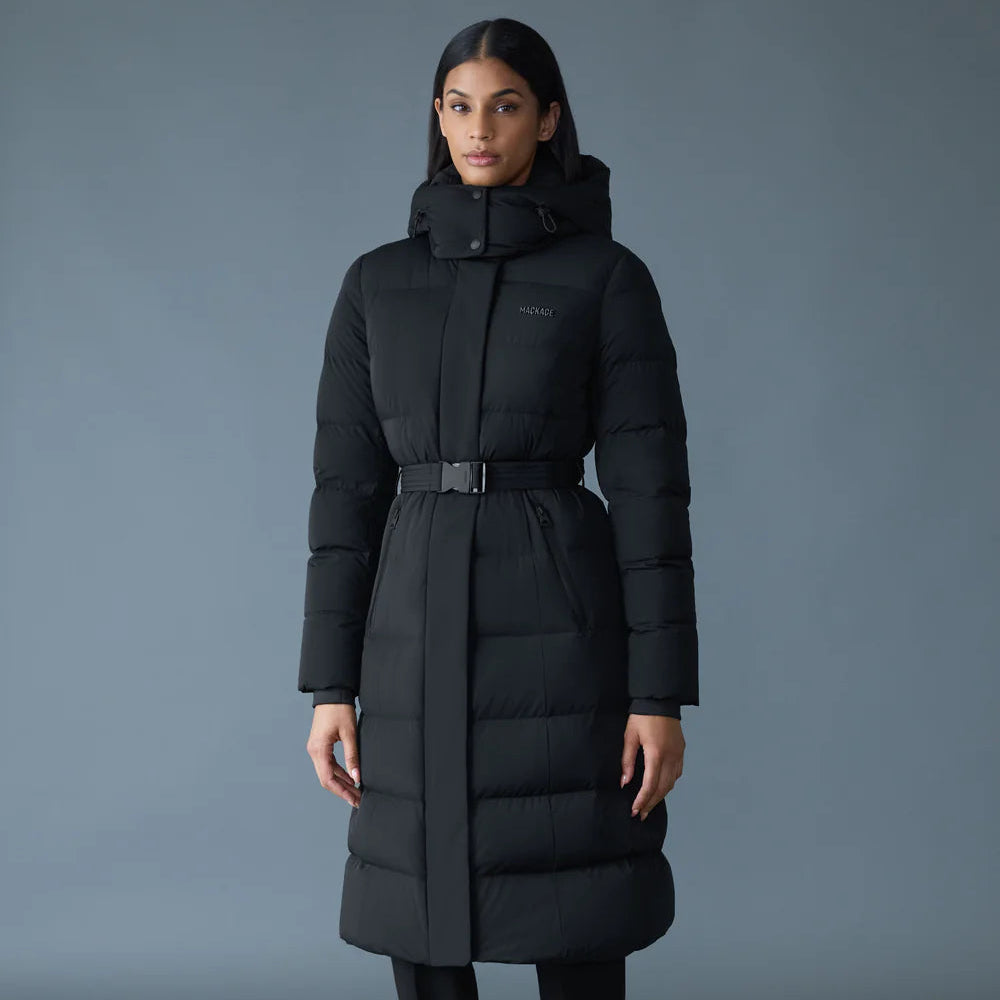 Mackage CORALIA-CITY Recycled Down Coat with Storm Visor and Belt