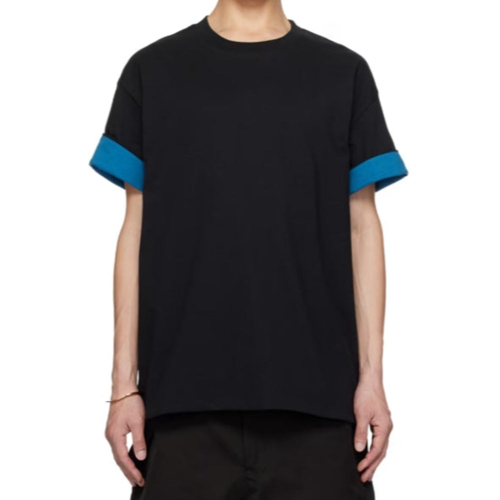 NEW Cotton jersey T-shirt. Layered constructionRib knit crewneckDropped shouldersLogo embroidered at inner cuff Supplier color: Black/Pacific 100% cotton. Made in...