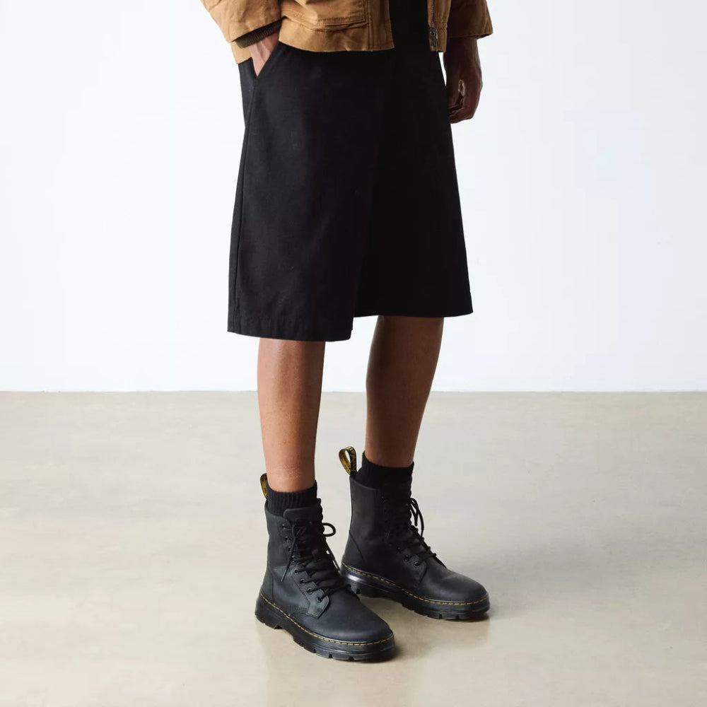 Lightweight. Rugged. Unmistakable. The Combs boot reimagines classic Doc’s DNA. An 8-eye boot with a tough-yet-lightweight Tract sole built with durable cemented construction and our classic yellow stitching. These boots are ready for anything and are detailed with hiker-inspired laces and a DM’s heel loop.